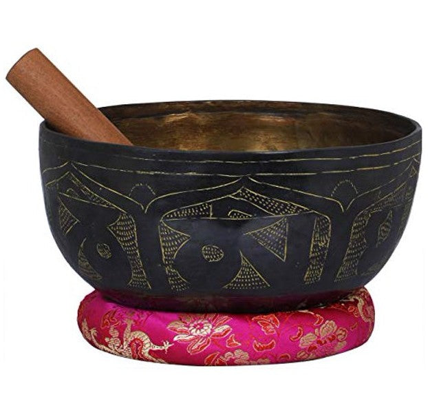 Exotic India Tibetan Buddhist Singing Bowl - Bronze Statue, Cloth and Wood