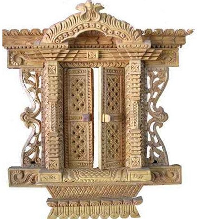 Wooden Hand Carved Windows, Natural Wood